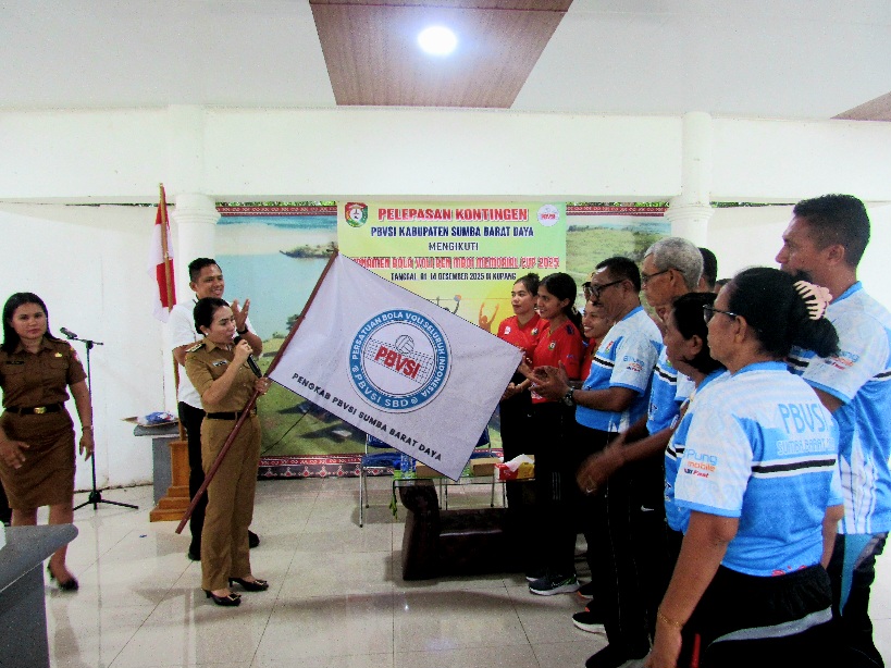 Tambolaka, Suarajarmas.id – Bupati Sumba Barat Daya (SBD), Ratu Ngadu Bonu Wulla, secara resmi melepas kontingen Persatuan Bola Voli Seluruh Indonesia (PBVSI) SBD untuk mengikuti Turnamen Bola Voli Ben Mboi Memorial Cup 2025 di Kupang.