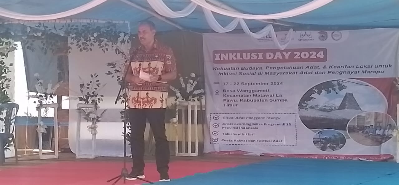 “Kami dari Pemerintah setempat mendukung penyelenggaraan Inklusi Day sebagai pembelajaran antar CSO dan komunitas terkait tradisi, adat istiadat, juga sebagai ruang kolaborasi dengan Pemerintah Daerah Kabupaten dalam mewujudkan kesetaraan hak dan pengakuan identitas asyarakat adat,” ujar Drs. Khristofel Praing, Bupati Sumba Timur.