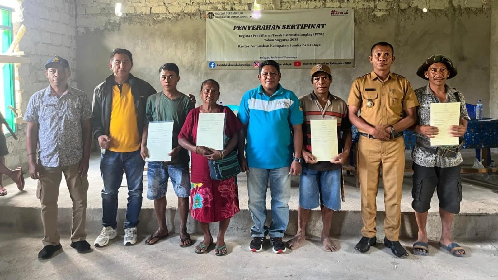 Wewewa Selatan, Suarajarmas.id – Program Pendaftaran Tanah Sistematis Lengkap (PTSL) di Desa Persiapan Pu’u Naga mulai menunjukkan hasil nyata. Sebanyak 151 bidang tanah milik warga telah bersertifikat dan resmi diserahkan kepada masyarakat.