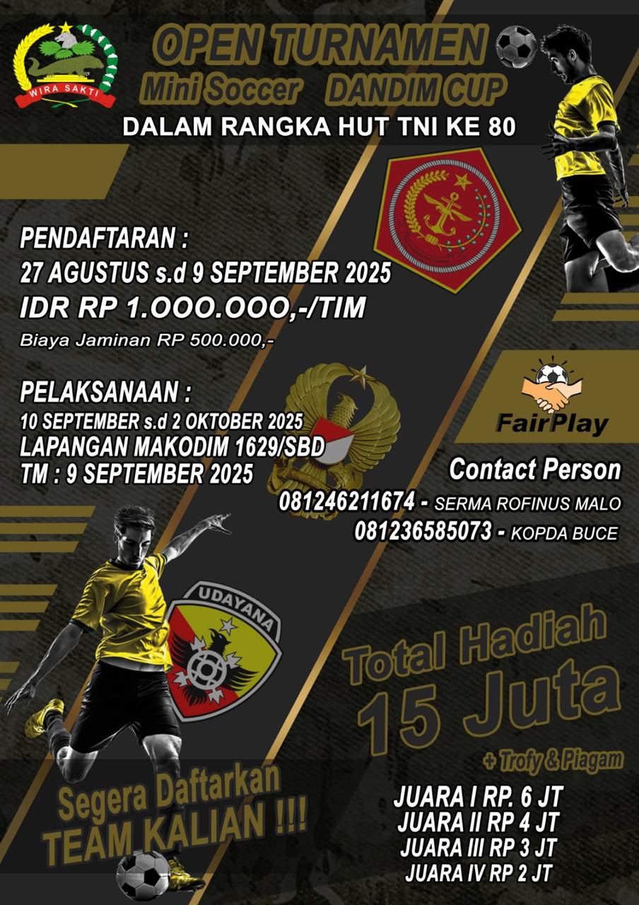 Segera daftarkan tim kalian dan jadilah bagian dari kemeriahan HUT TNI ke-80 melalui Dandim Cup 2025***