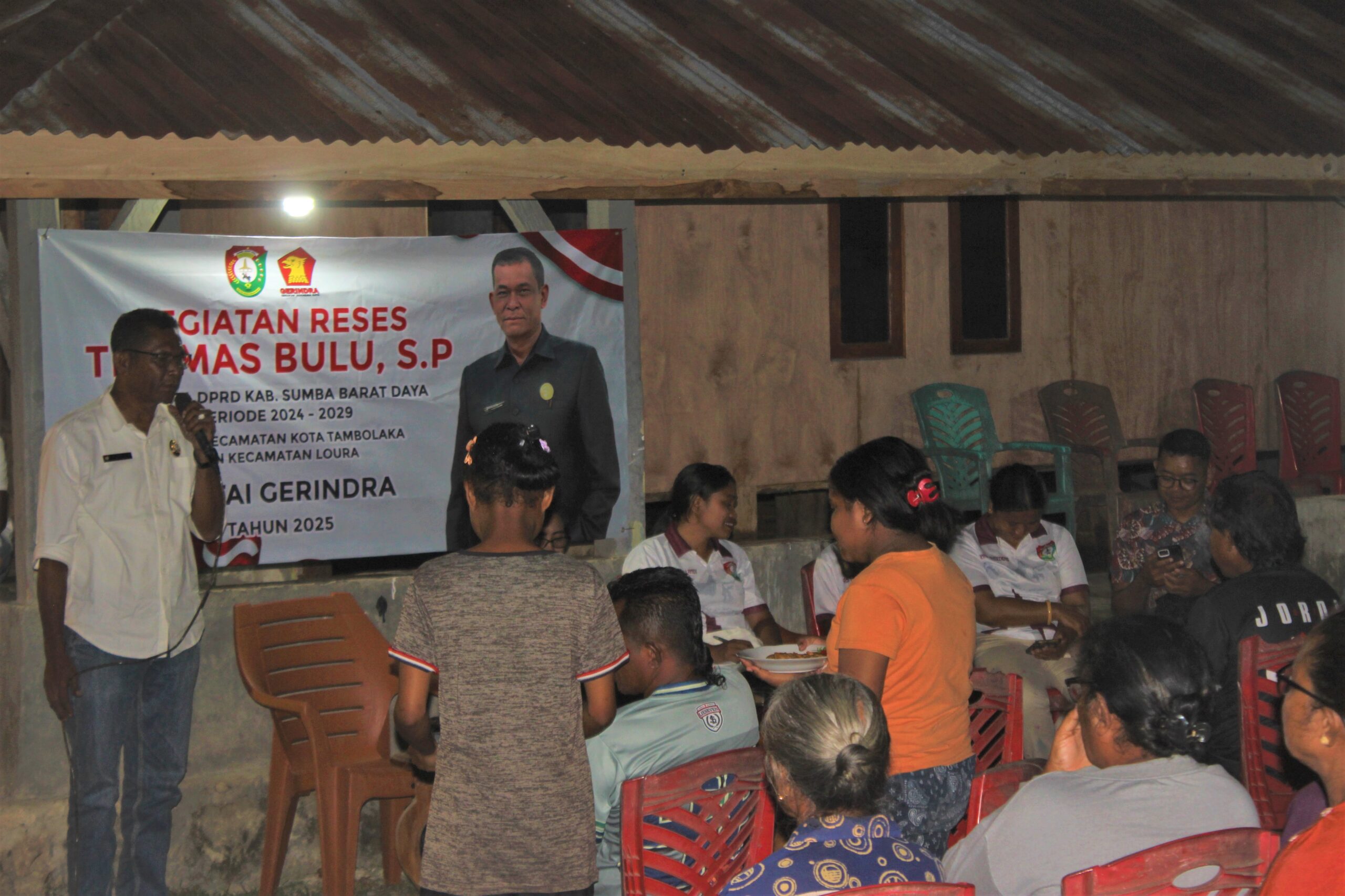 Tambolaka, SuaraJarmas.id — Anggota DPRD Kabupaten Sumba Barat Daya (SBD) dari Partai Gerindra, Thomas Bulu, S.P, menggelar reses masa sidang II di Kampung Kalowo Dana RT 16, Kelurahan Weetabula, Kecamatan Kota Tambolaka, Sabtu (23/8/2025).