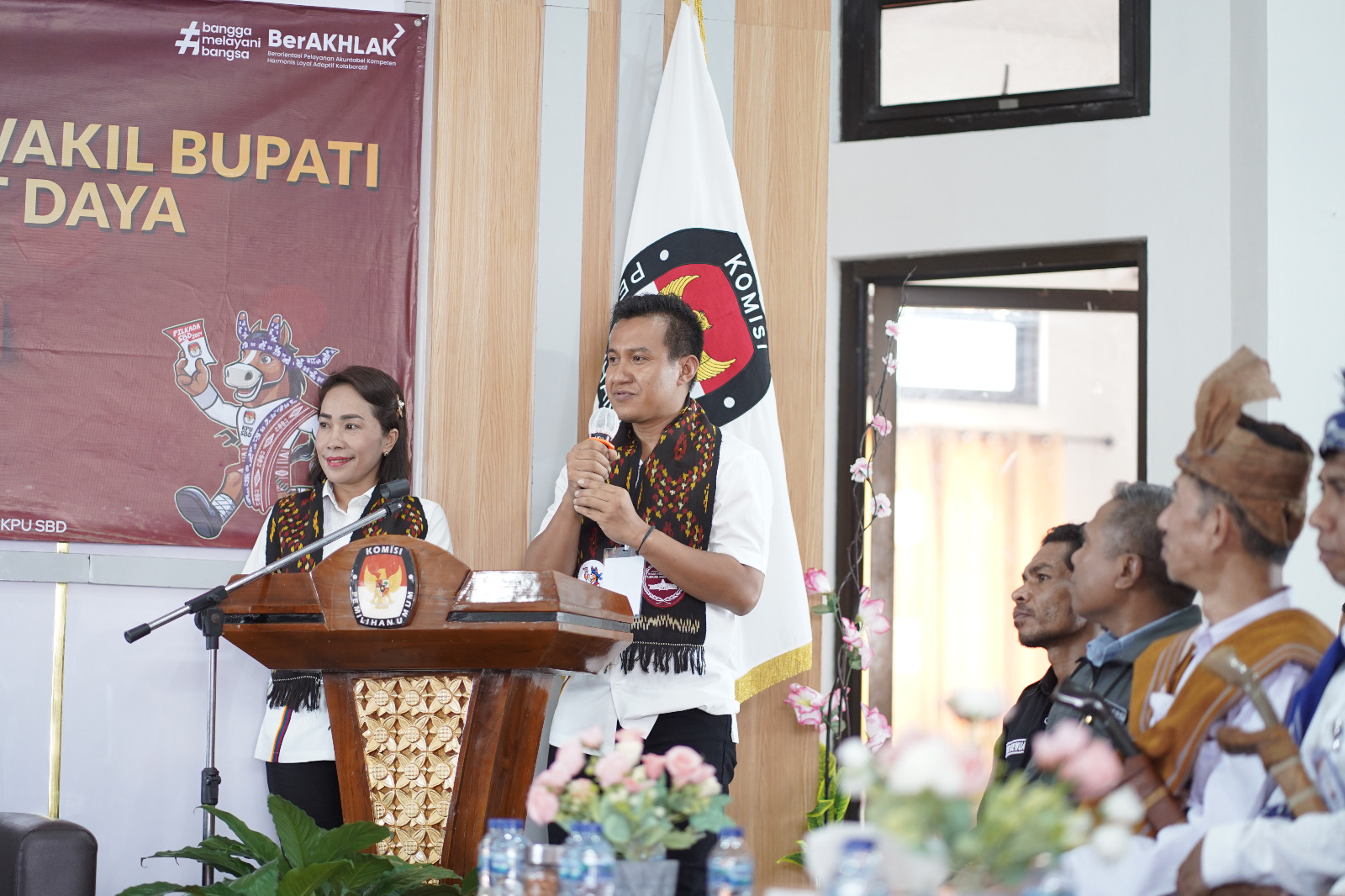 Pasangan Ratu-Angga didampingi oleh para ketua Partai Politik pengusung di antarnya Ketua DPC PDIP SBD, dr. Kornelius Kodi Mete, Ketua DPD Partai Nasdem SBD, Markus Dairo Talu, SH yang, Ketua DPC PKS, Abu Sumbawa, Ketua DPC PKB Tobias Dowa Lelu, Ketua DPC Partai Perindo Yohanes Reli Kaka dan para pendukung.